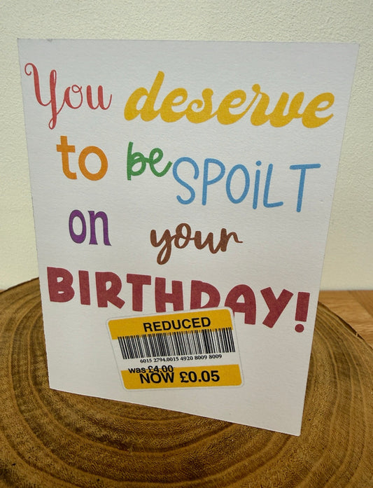 Funny Reduced Price Birthday Card – Spoilt on Your Birthday Design