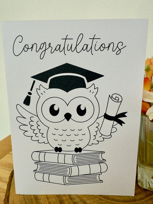 Wise Words & Bright Futures – Graduation Owl Congratulations Card