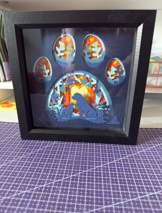 "Pawprints & Whiskers" – 3D Pet Shadow Box Frame with Light Option
