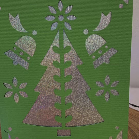 ✔ 1 x Intricate Cutaway Christmas Tree and Bells Card (choose Red, Green, or Blue)
