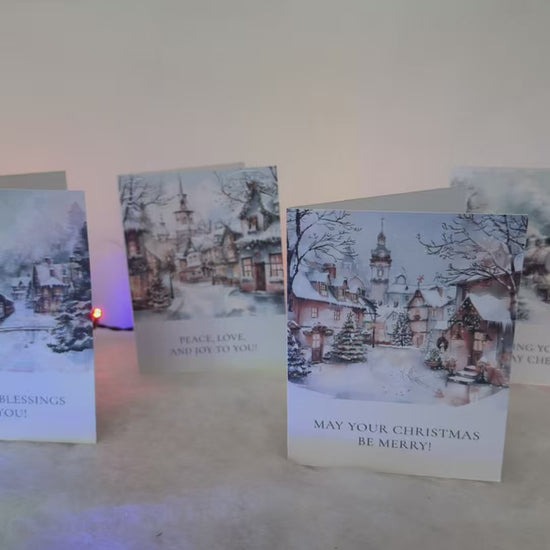 From glowing village streets to peaceful snowy cottages, these cards evoke the warmth and wonder of a Victorian-style Christmas, making them perfect for sharing heartfelt festive wishes.