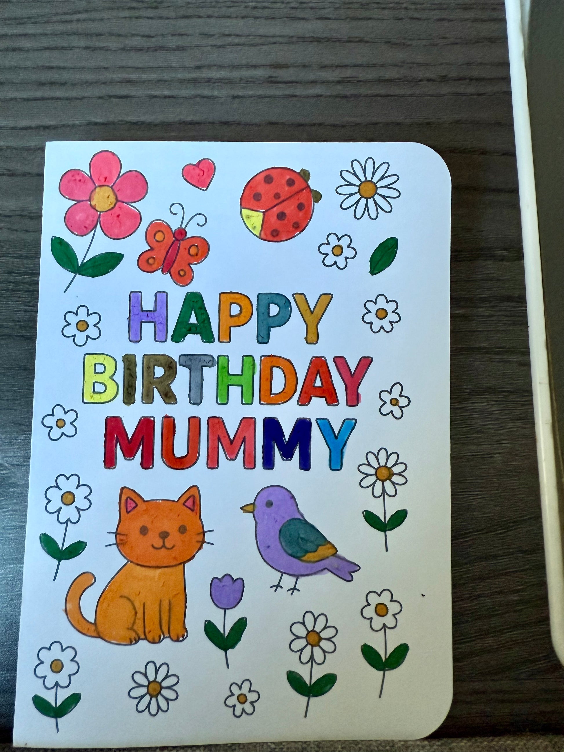 ✔ 1 x Colour-Me-In Birthday Card (choose from Mummy, Daddy, or Happy Birthday)