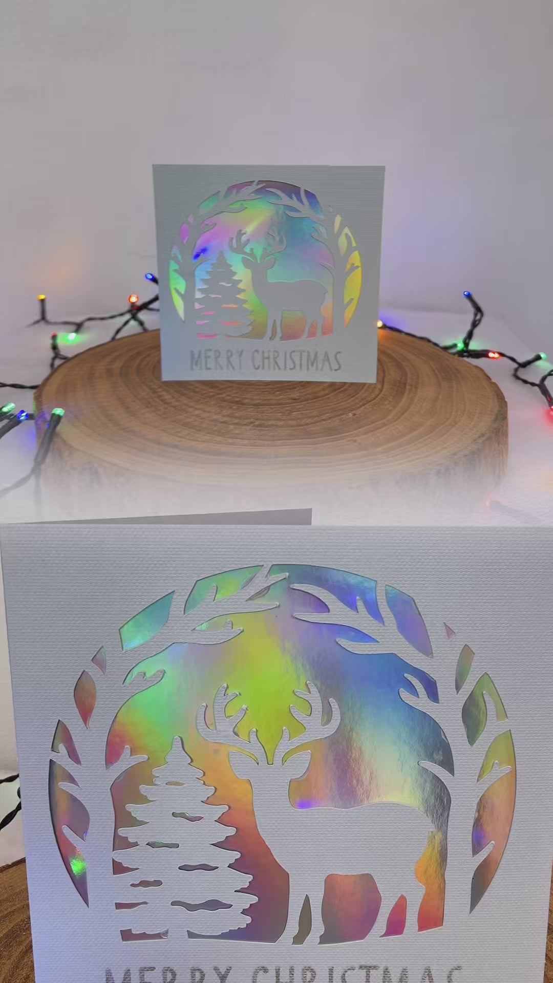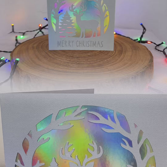 ✔ 1 x Enchanted Winter Deer Cutaway Christmas Card with Holographic Detail